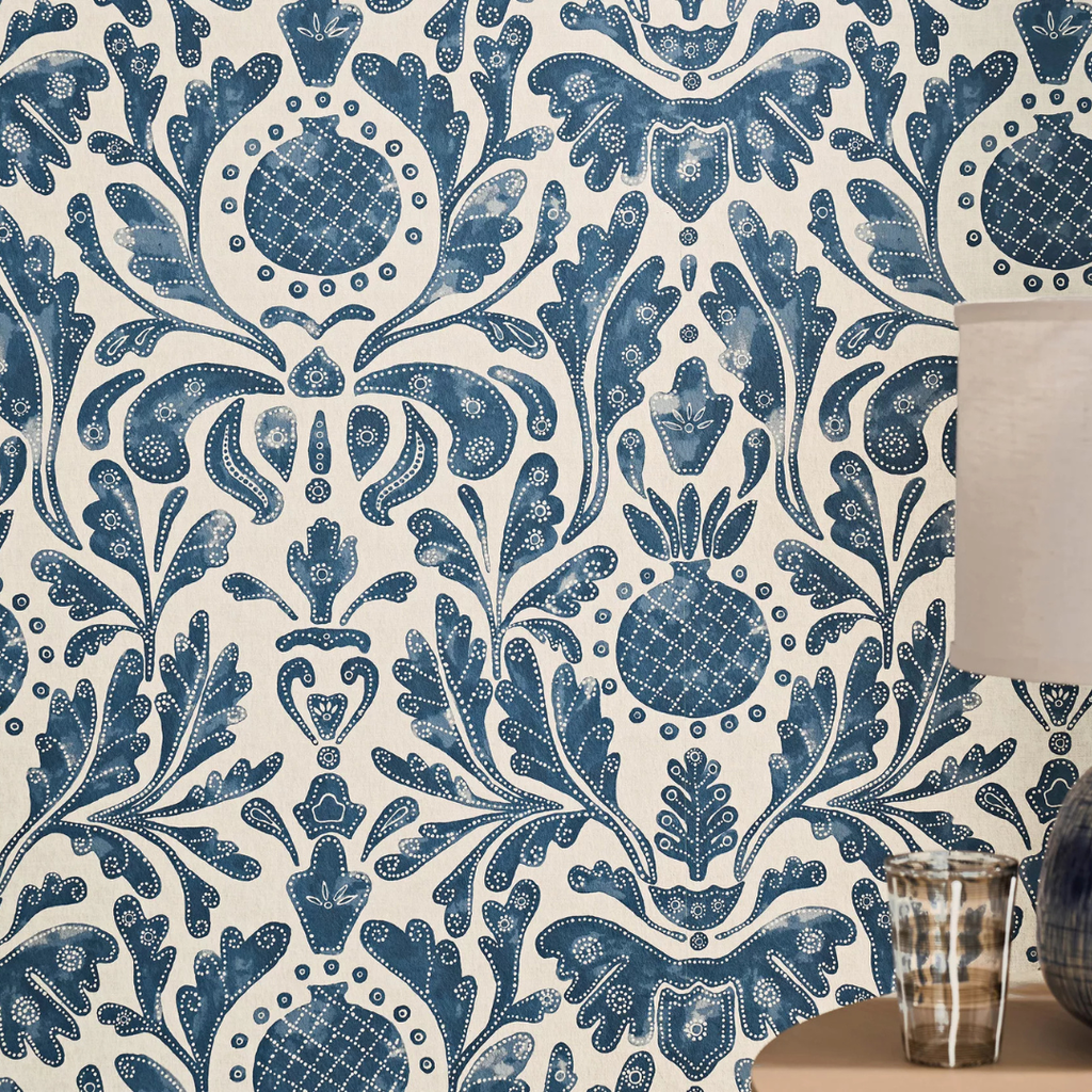 With references to traditional motifs, artisan techniques, and a harmonious colour palette, the designs evoke a sense of quiet elegance. Alongside new patterns Nina also revisits three favourite fabric designs, reimagining them as wallpapers.