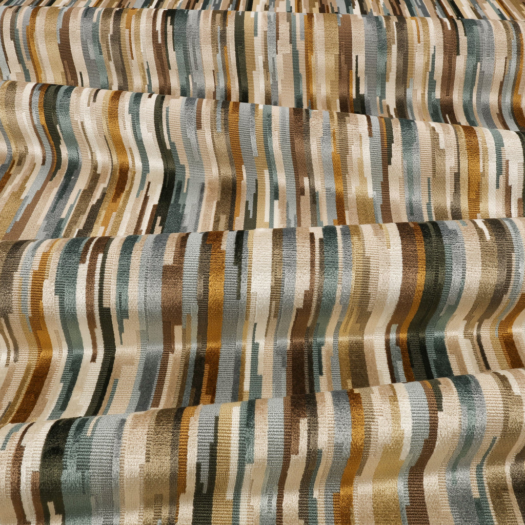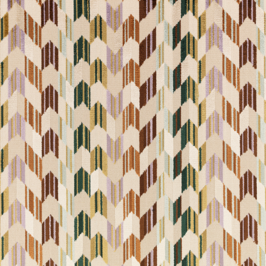 A bold collection of fire-retardant épinglé velvets, featuring vibrant colour, rich texture, and graphic geometrics, chevrons, and stripes. Woven by a family-run mill using traditional wire looms, each design reflects generations of craftsmanship. Rooted in modernist textile design, Zephi combines style and function with rhythmic patterns that create movement and visual harmony.
